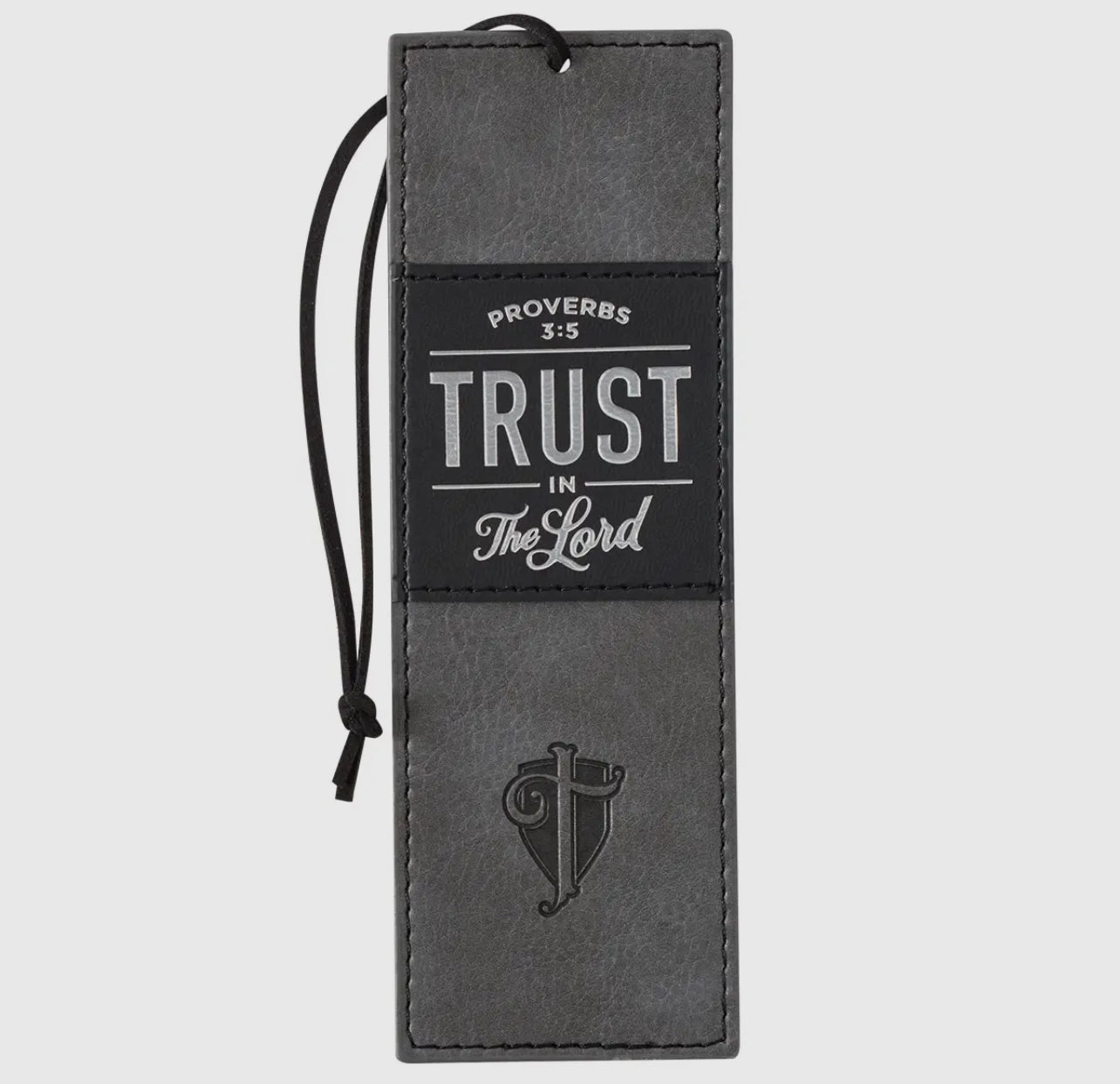 Trust in the Lord Prov. 3:5 Bookmark Faux Leather Gray/Black
