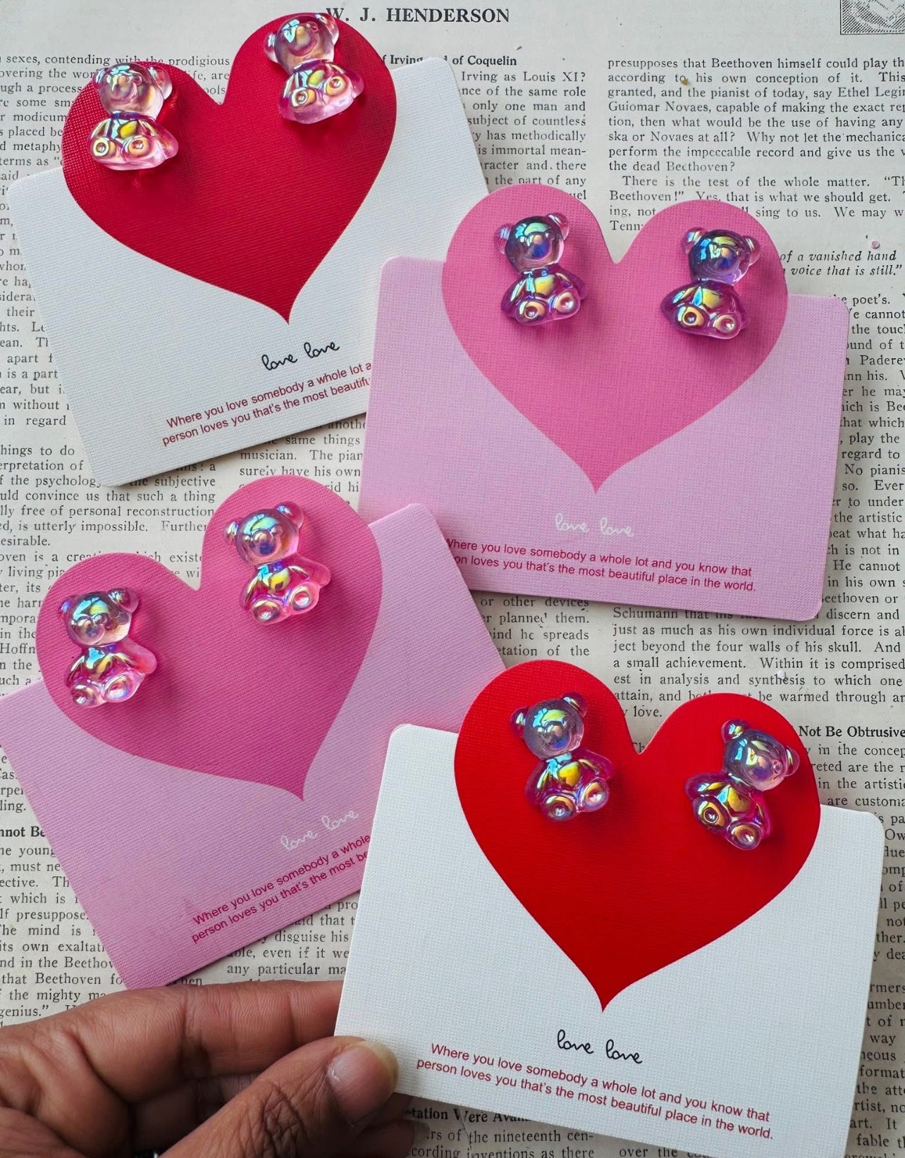 Comes as shown. Can specify red heart or pink heart otherwise sent random.