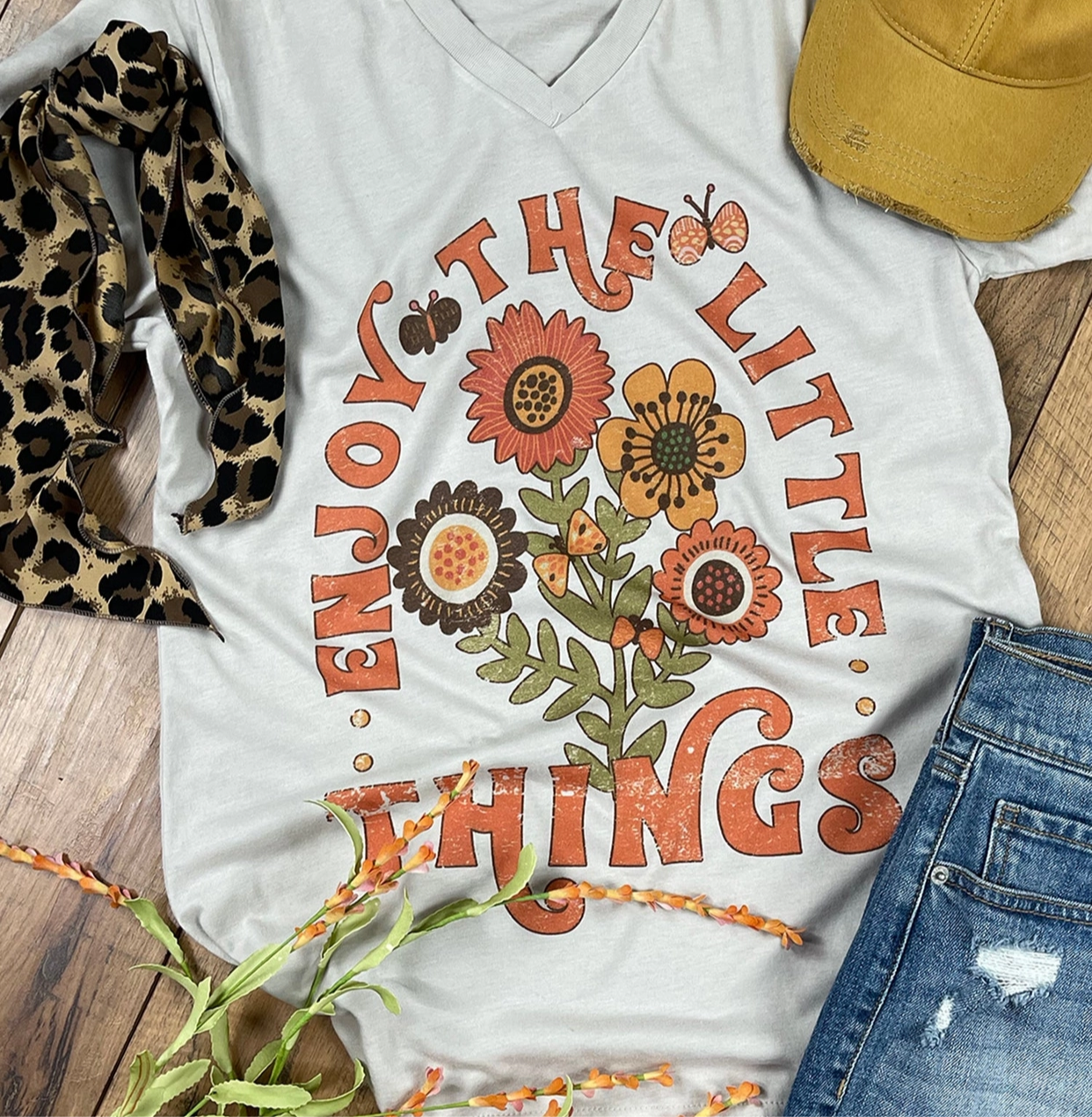 Enjoy The Little Things V Neck Ash Bella Canvas Tee