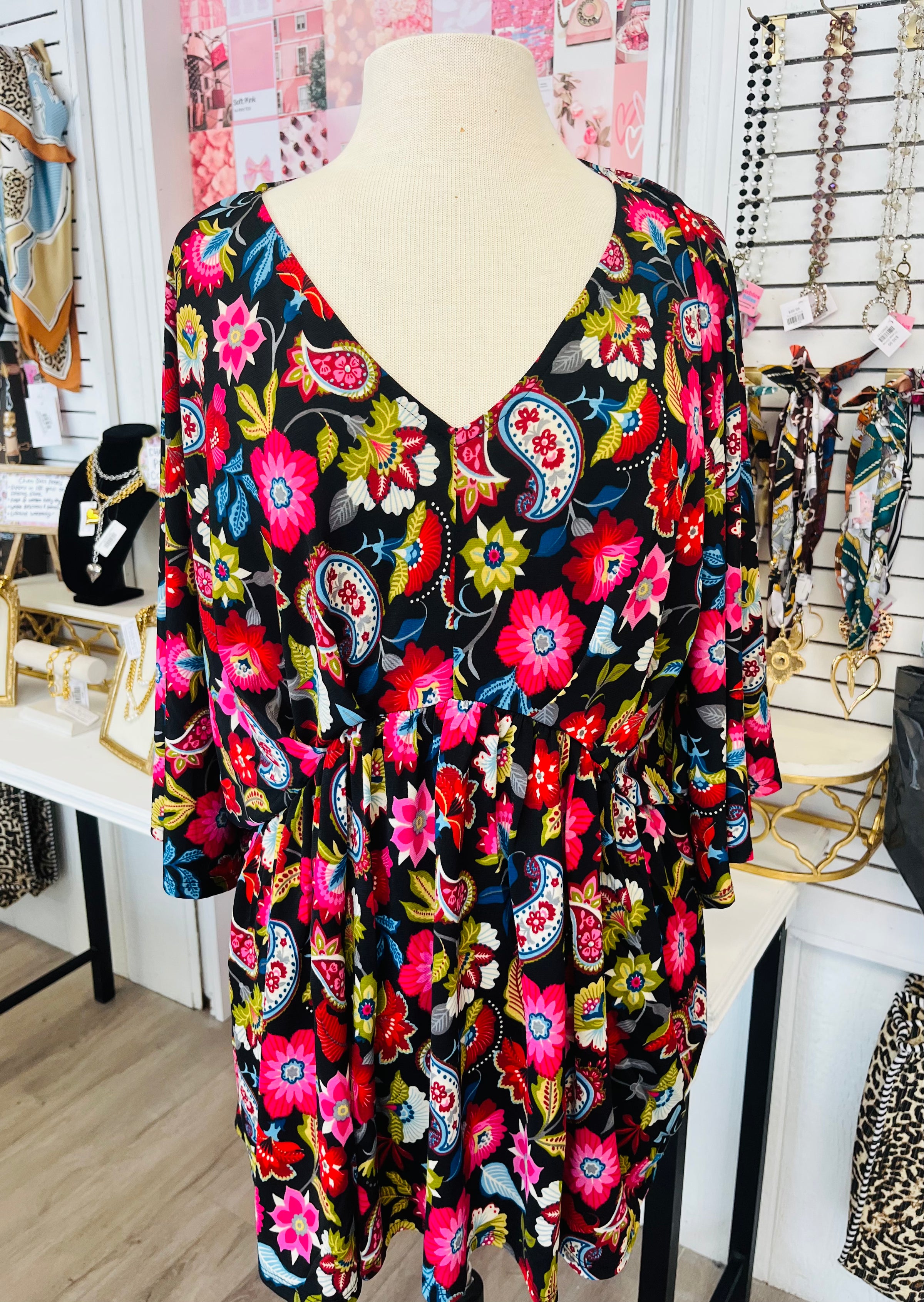 Take The Journey Faux Embroidered Floral Black Peplum Top