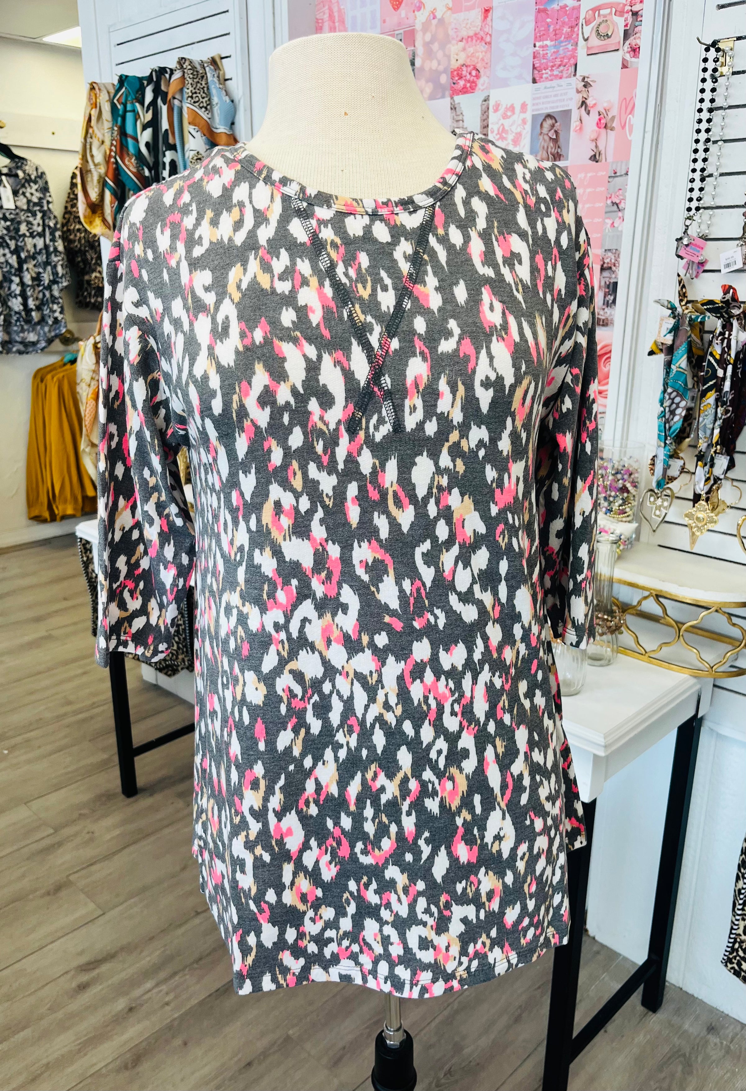 Only You Olive & Pink Paisley Lizzy 3/4 Top