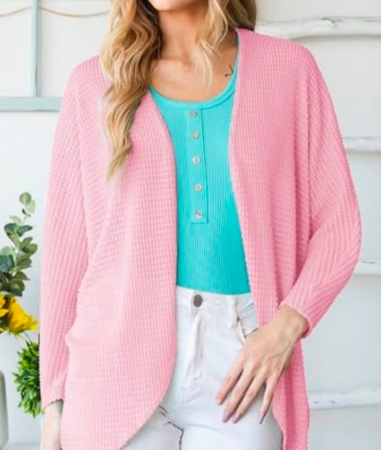 Dusty Pink - All Over Comfort Waffle Slouch Cardigan
