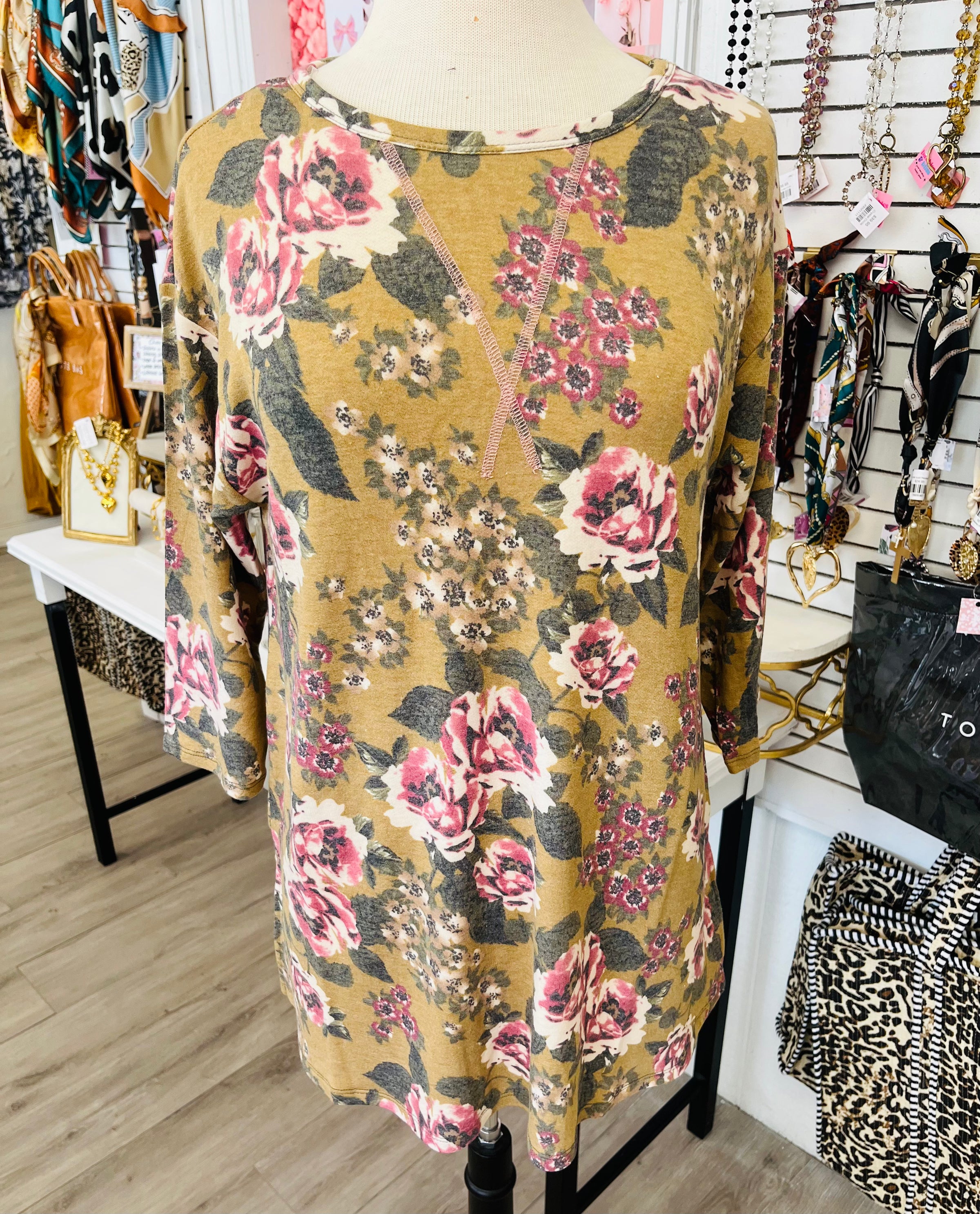 Changing Seasons Mustard Floral Top