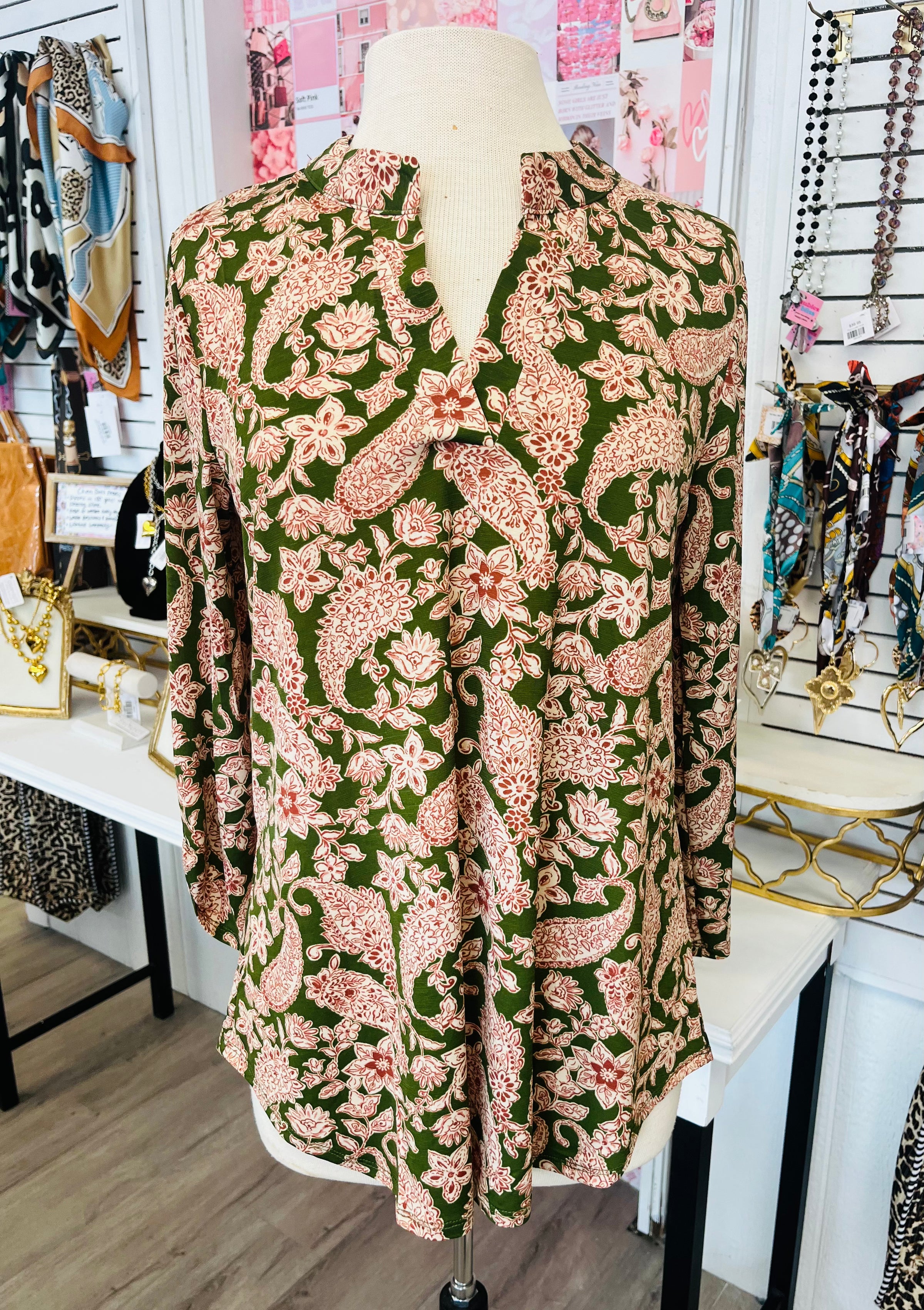 Saturday Morning Stroll Navy & Mauve Floral Top