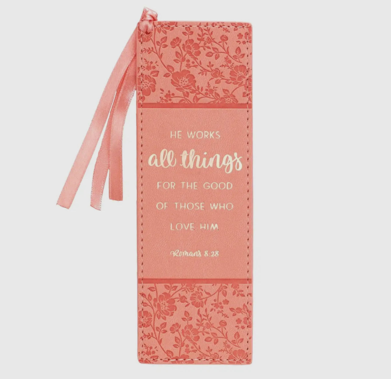 All Things Rom. 8:28 Bookmark Faux Leather Coral