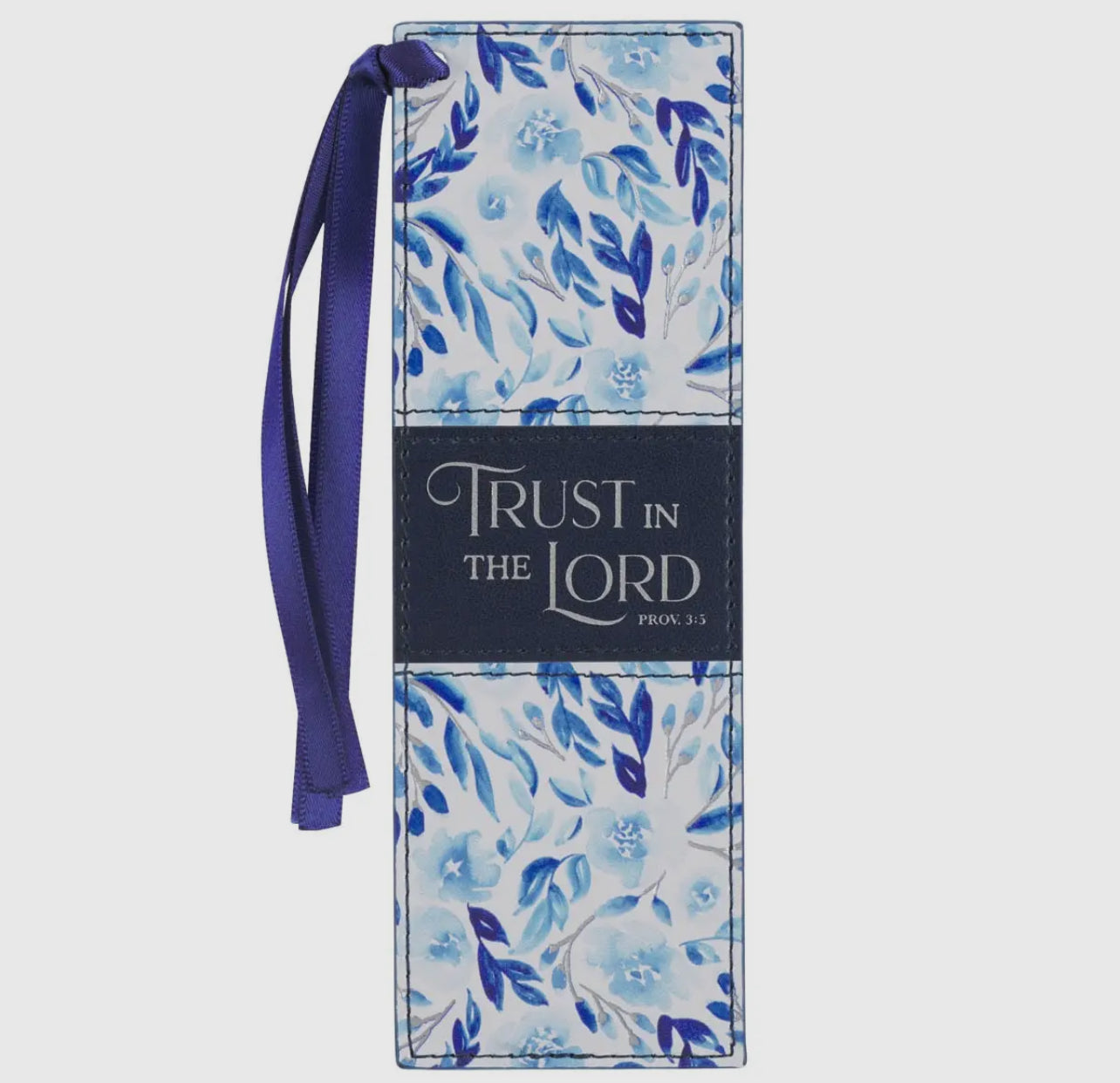 Blue Floral Trust Prov 3:5 Bookmark Faux Leather