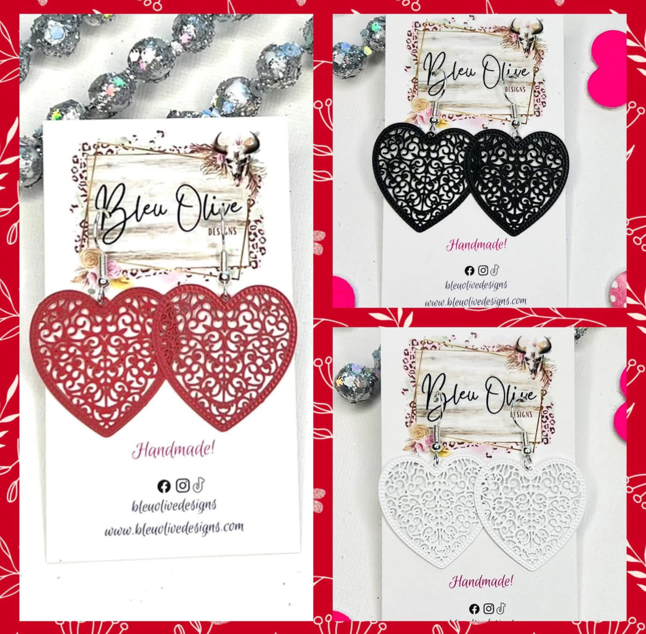 Lace Heart Metal Earrings