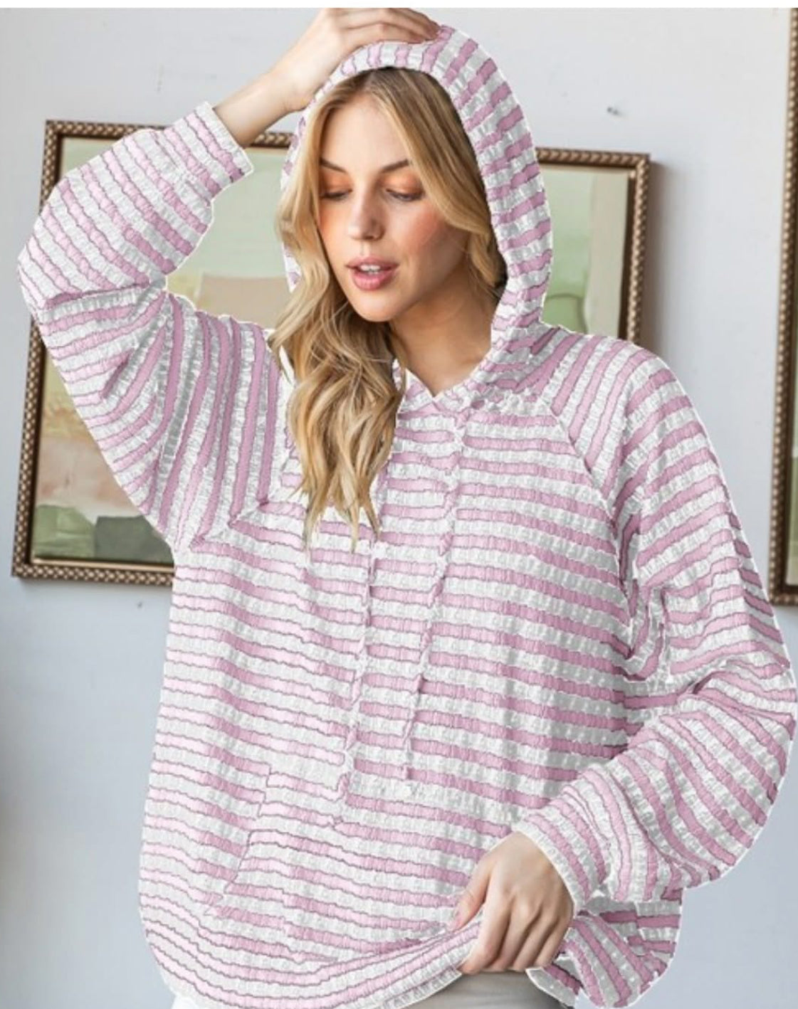 Loved By You Dusty Pink & Cream Stripe Hoodie Pullover