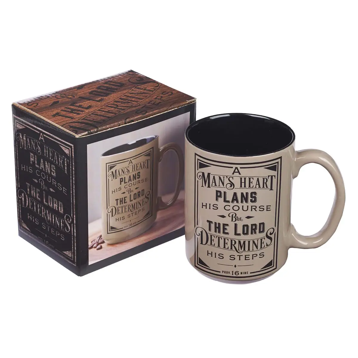 Mug Brown/Black A Man's Heart Prov. 16:9